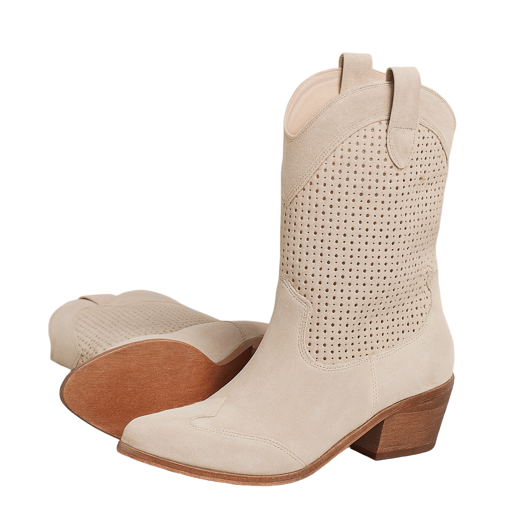 Dida™ kombinerer charmen fra klassiske westernstøvler med et moderne, perforeret ruskindsdesign og en komfortabel blokhæl. Perfekte til både hverdagsbrug og mere afslappede aftenlooks – altid stilfulde, altid alsidige.