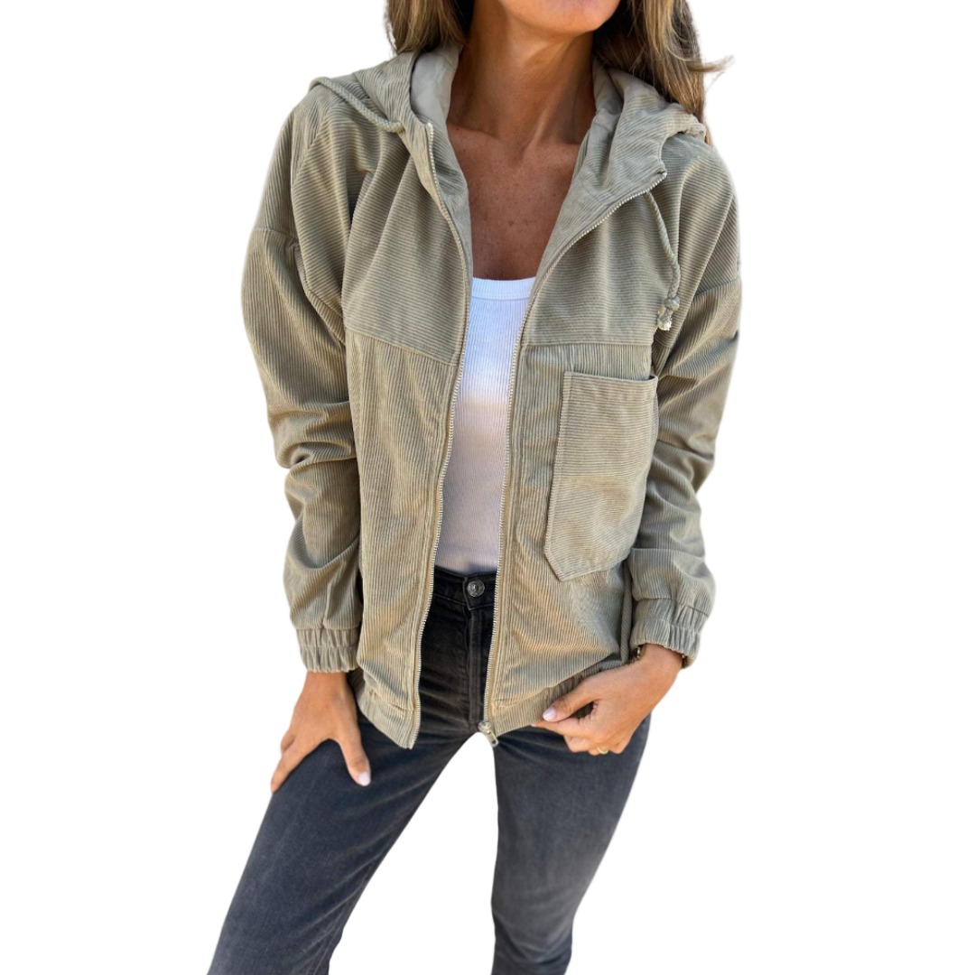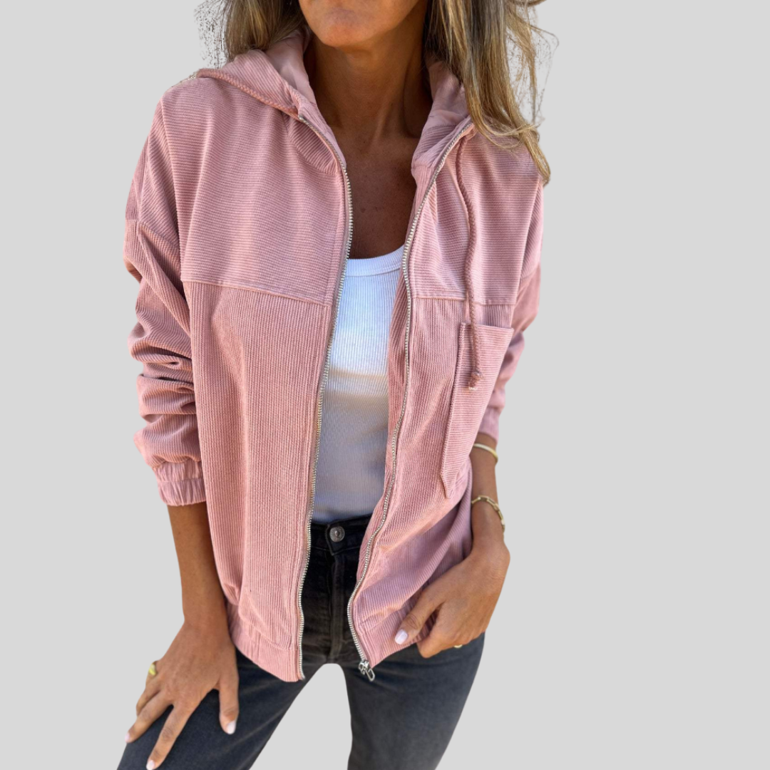 Danna™ er den perfekte kombination af afslappet stil og hyggelig varme. Lavet i blødt fløjl, med praktisk lynlås og hætte, giver den et afslappet men stilfuldt look, ideelt til både hverdagsbrug og weekendture.