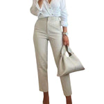 Sibel™ forener elegance og komfort: blødt materiale, mellem/høj talje, der fremhæver figuren, og et lige ben med flydende fald. Alsidig til arbejde, events og hverdagen — let at style med skjorter, strik og blazere.