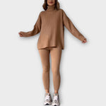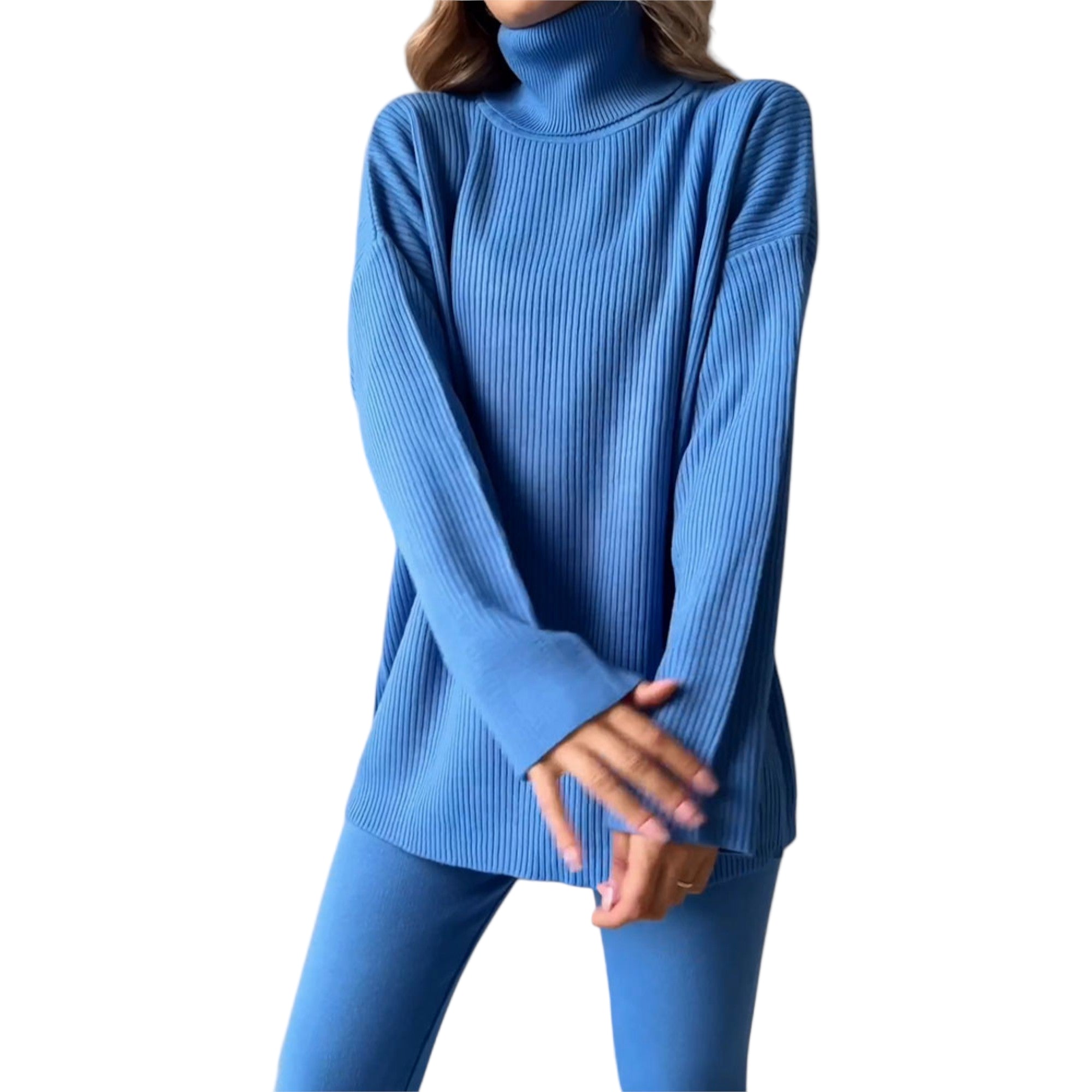 Elva™ er skabt til kvinder, der værdsætter balancen mellem komfort og modernitet. Med sit moderne udtryk og sofistikerede snit er dette strikkede sæt både alsidigt og elegant – perfekt til hverdagen eller afslappede lejligheder med et strejf af stil.