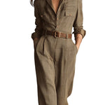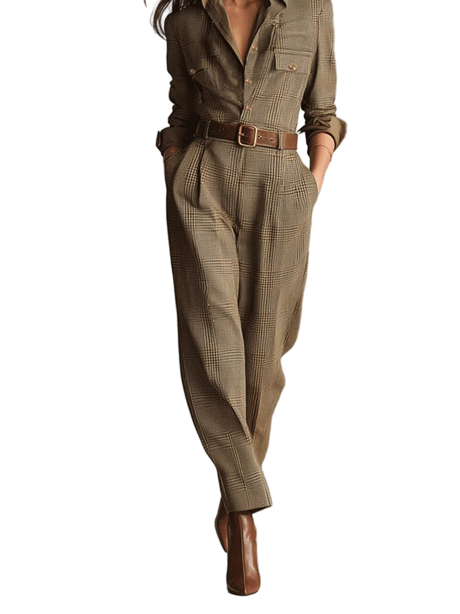 Lorena™ er en buksedragt med et raffineret snit, klassisk ternet mønster og et bredt bælte, der fremhæver taljen. En statement-piece til kvinder med selvtillid og sans for tidløs mode.