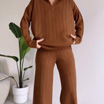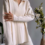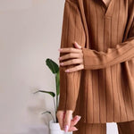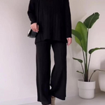 Navone™ er et elegant to-delt sæt i jacquardstof med diskret stribet struktur, der kombinerer stil og komfort. Designet til den moderne kvinde, der ønsker et poleret look uden at miste letheden – perfekt til både arbejde og fritid.