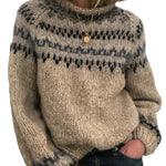 Nordic Warm™ er en striktrøje, der kombinerer en klassisk rund halsudskæring med en høj krave, som giver ekstra varme og et sofistikeret udtryk. Perfekt til både hverdag og særlige lejligheder i de kolde måneder.